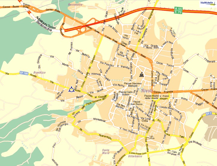 corso Regina Margherita e imboccare l'autostrada del Frejus; uscire a Rivoli (seconda uscita dopo il casello), seguendo poi le indicazioni